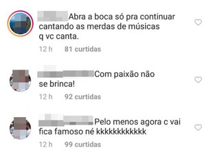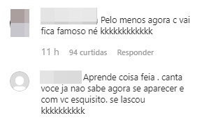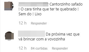 Nos comentários, alguns torcedores chegam a dizer ao cantor para agradecer por ter “apenas” sido agredido, que ele mexeu com a torcida errada e que “o que é dele está guardado”.