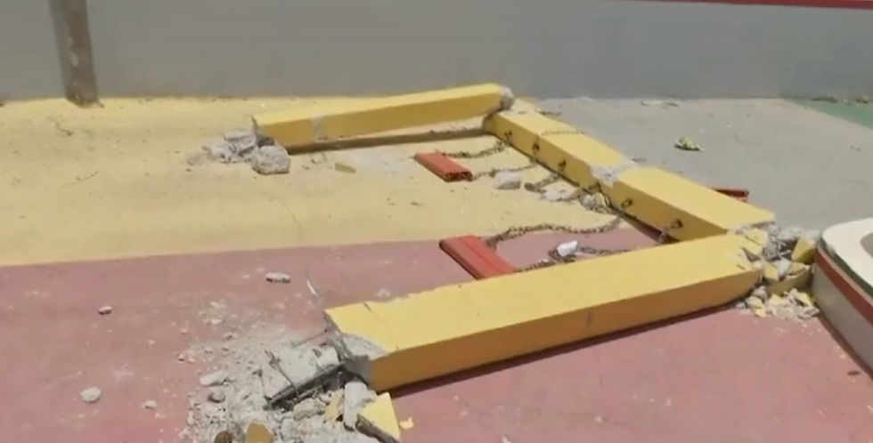 A mão da criança foi esmagada pela estrutura de concreto que cedeu e o menino quebrou cinco dedos. De acordo com familiares, o menino estava brincando com dois amigos, quando a estrutura do brinquedo desabou.